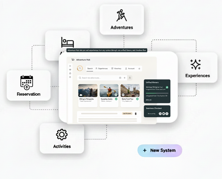 Adventure Hub lets you sell experiences from any system through one unified search, itinerary, and checkout flow