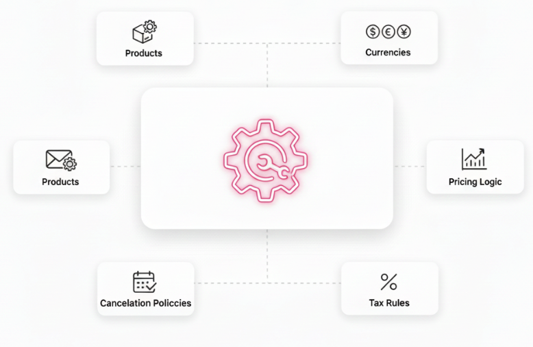 Customize products, currencies, pricing logic, tax rules, and cancellation policies